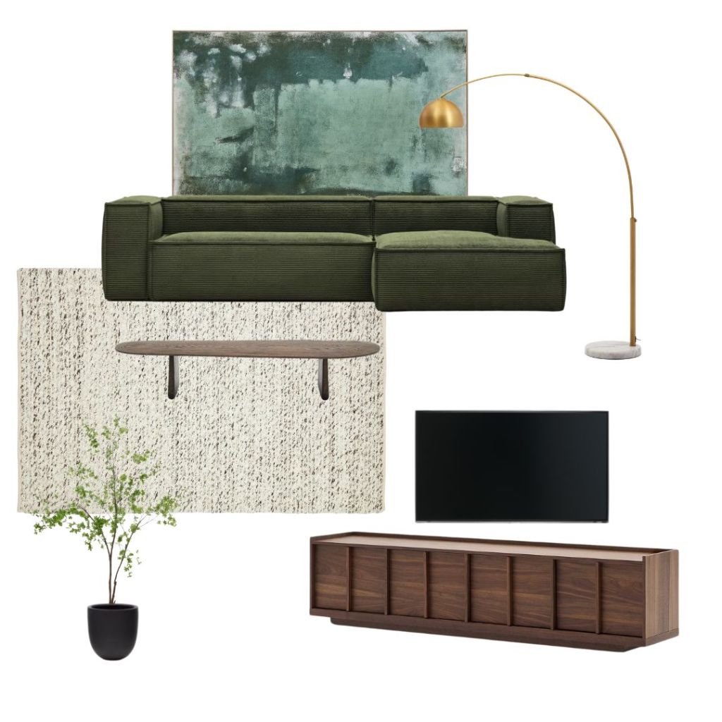 Alfombra – Mesa Centro – Sofá – Cuadro – Lámpara – Aparador de Televisión – Planta