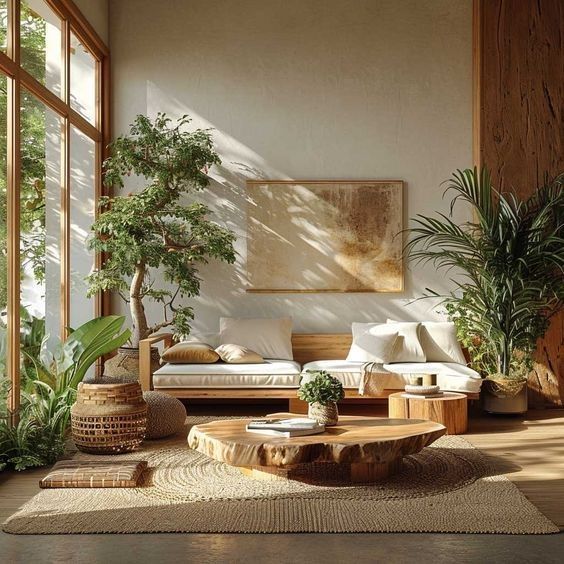 La conexión con la naturaleza sigue ganando protagonismo. Materiales orgánicos como la madera sin tratar, el lino y la piedra natural estarán en el centro de la decoración. Además, las plantas de interior grandes y los jardines verticales serán esenciales para crear espacios más frescos y armoniosos.