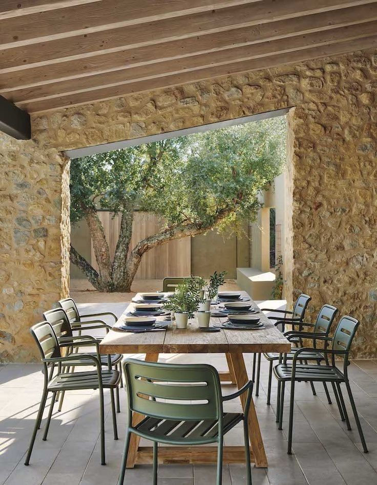 - Comedor al aire libre: con una mesa y sillas resistentes