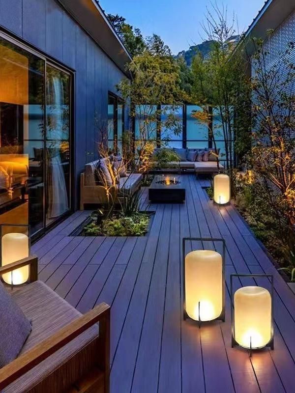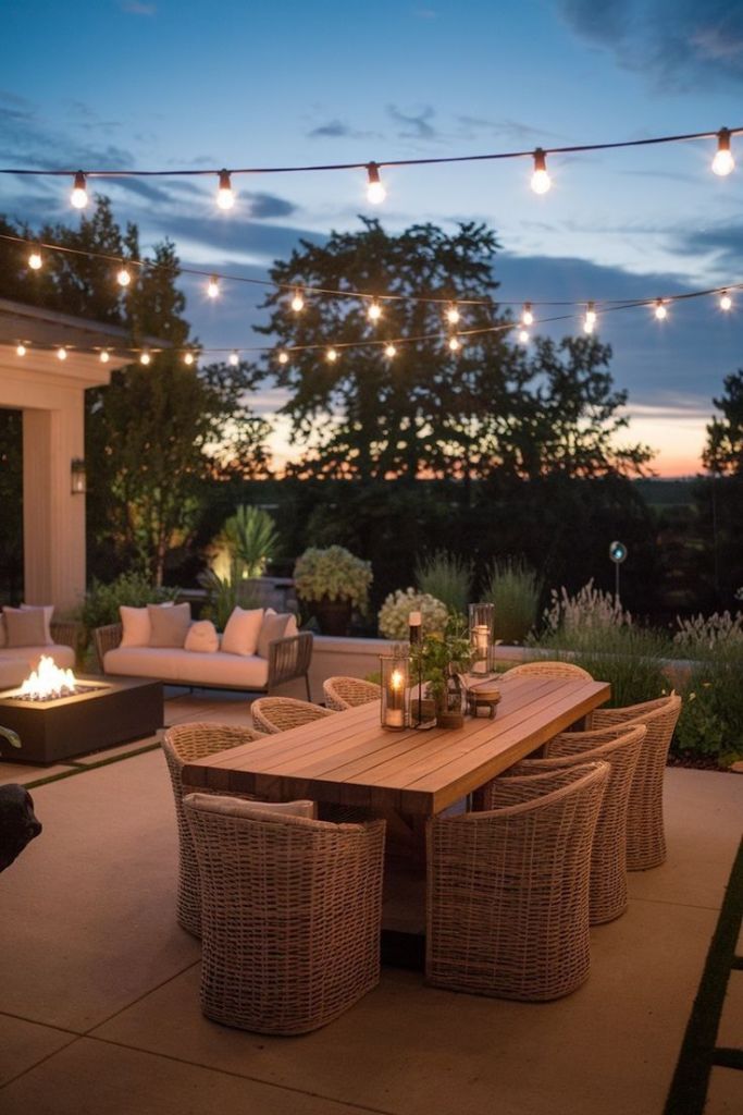 La iluminación es clave para crear un ambiente cálido por la noche. Algunas opciones incluyen: